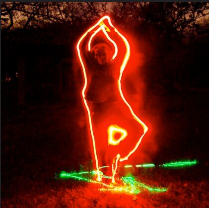 Otra de las actividades llamativas de este encuentro es pintar con luz, que se trata de hacer fotografías de tiempo prolongado para captar la luz de focos con cuya luz se hacen dibujos en el aire.