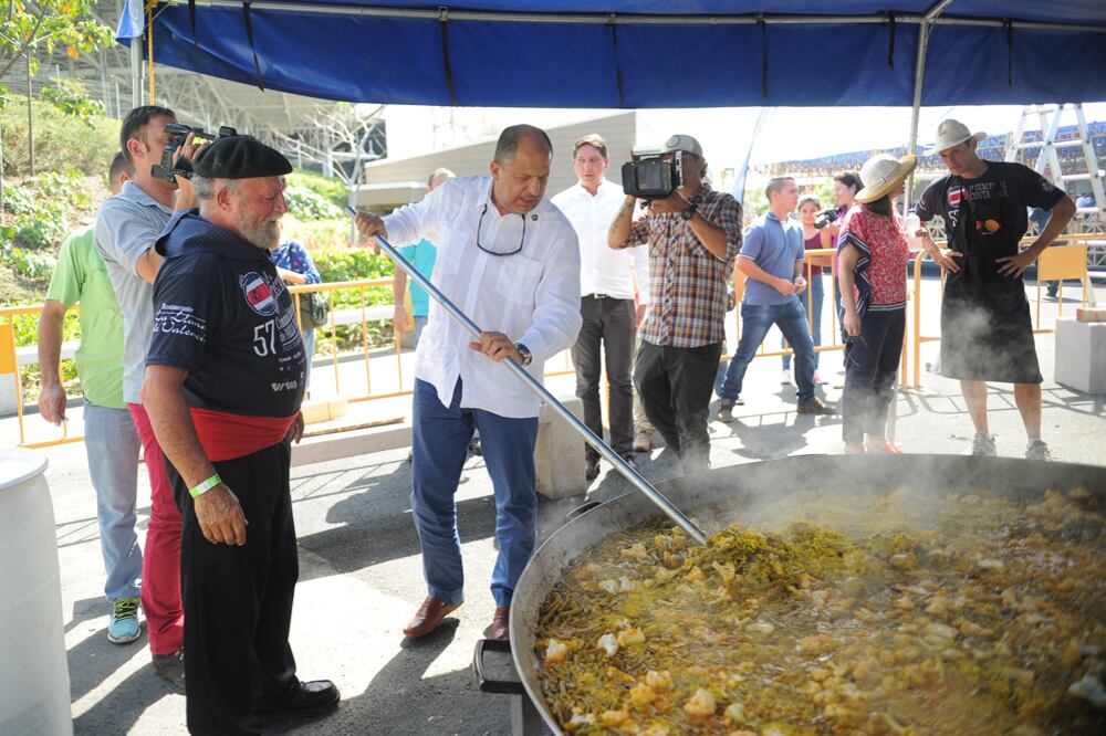Estaba en lo cierto. No solo dio vida a la megapaella al lado de un equipo de más de 10 cocineros y la mirada curiosa de los asistentes al Street Food Festival, sino que tuvo entre sus comensales a un par de invitados especiales: al presidente Luis Guillermo Solís y a la primera dama, la española Mercedes Peñas.