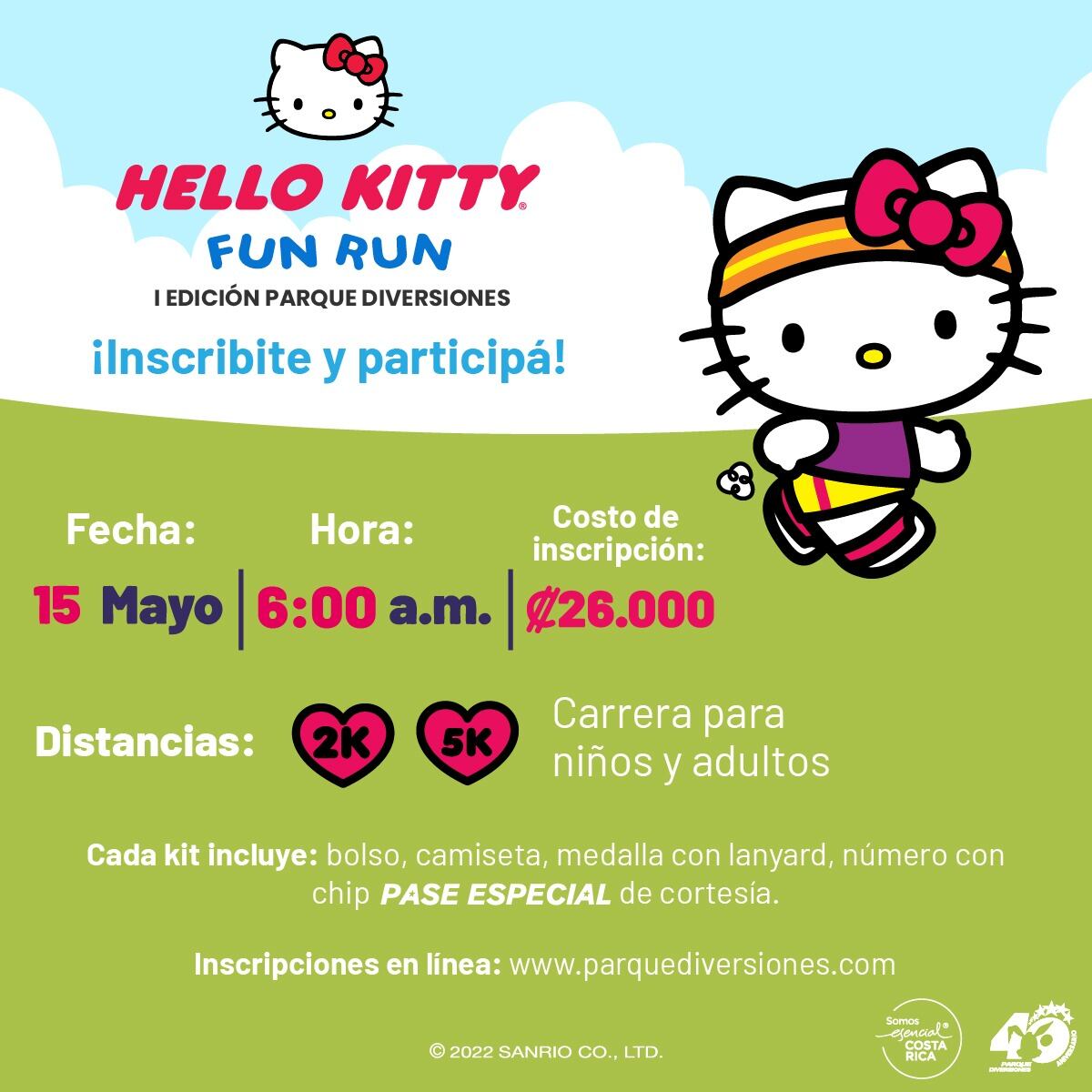 Hello Kitty tendrá su popia carrera en Parque Diversiones, recinto de entretenimiento ubicado en La Uruca, San José. El evento llevará por nombre Hello Kitty Fun Run.
