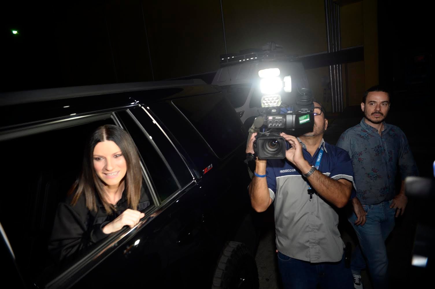Una sonriente Laura Pausini saludó muy brevemente a sus fans este martes tras su llegada a Costa Rica.