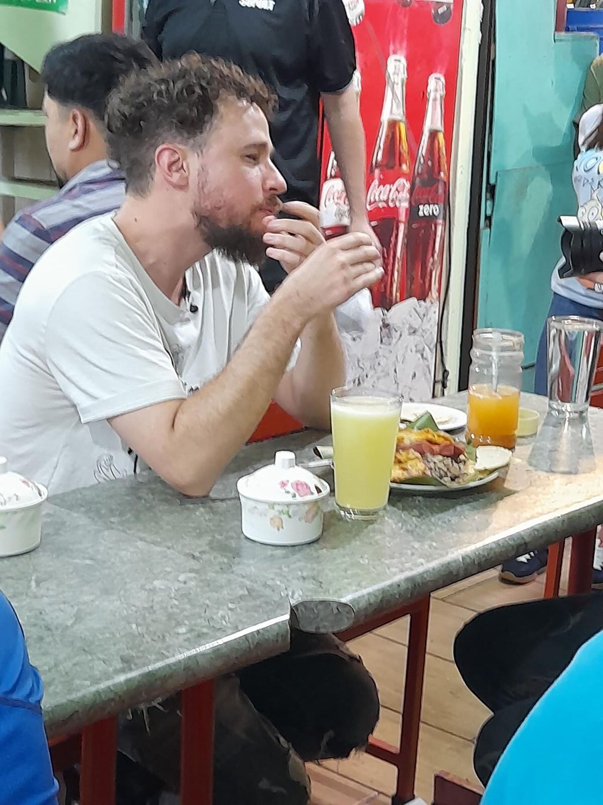 El influencer de 31 años probó ese famoso platillo en su visita al Mercado Central, en San José, hace unos días. En esa visita también degustó los famosos helados de sorbetera y un fresco de cas.