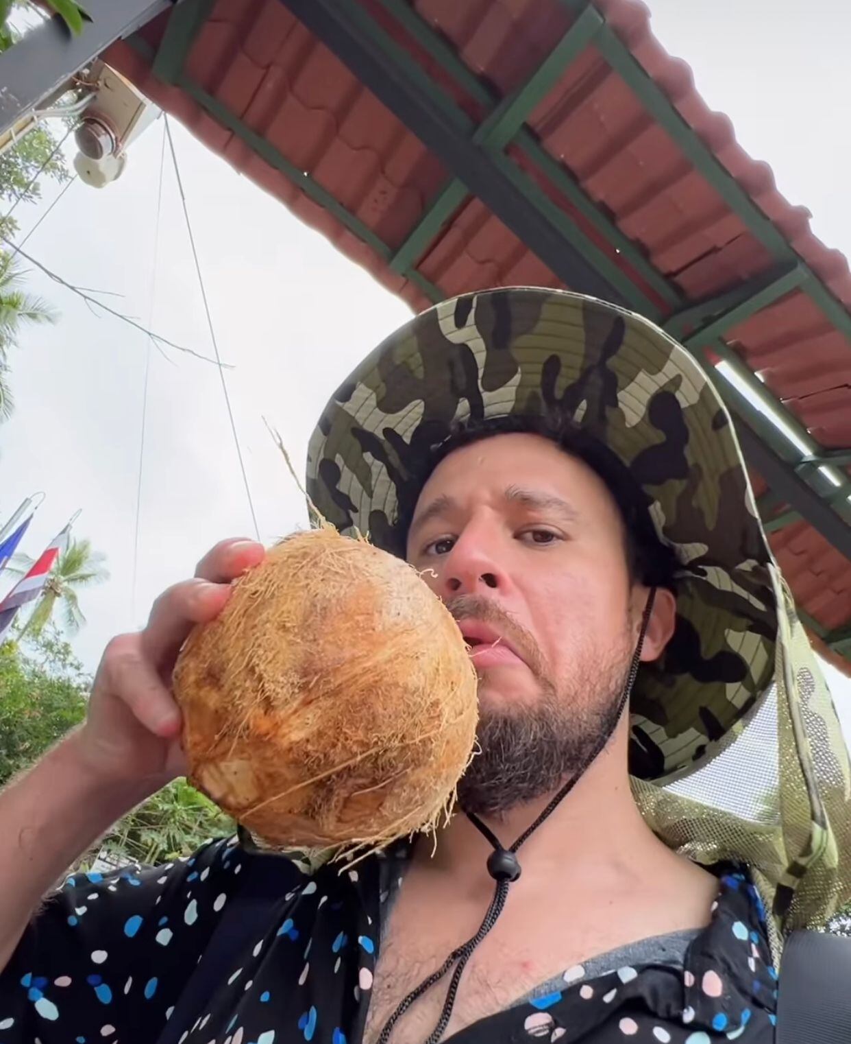 En otra historia se le ve asombrado por lo barato que es el agua de coco. “Cuesta menos de $1 (¢500)″, dice.
