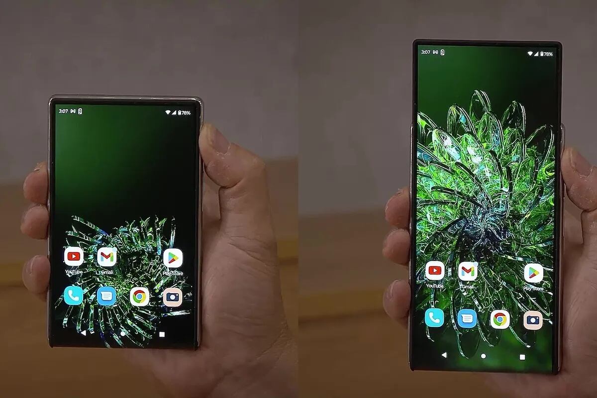 El dispositivo toma una idea que ya había demostrado LG con el modelo Rollable (que estuvo a punto de poner en venta un smartphone con este diseño en el 2021) y que usa una pantalla flexible que se extiende a lo lateral.