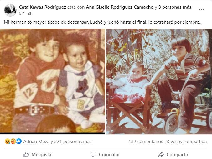 Con una emotiva publicación en Facebook, Cata Kawas Rodríguez, su hermana, comunicó que su hermanito mayor descansó y que lo extrañará “por siempre”.