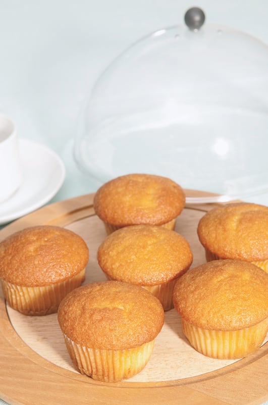 Mezcle el azúcar, la margarina, y la mitad de los huevos hasta que quede bien cremado. Agregue poco a poco la harina, polvo de hornear (previamente colados), la leche y el resto del huevo. Revuelva todo muy bien intercambiando entre líquidos y secos hasta obtener una mezcla homogénea. Vierta la mezcla en pequeños moldes especiales para muffins. Hornee a 325°C por 45 minutos aproximadamente.