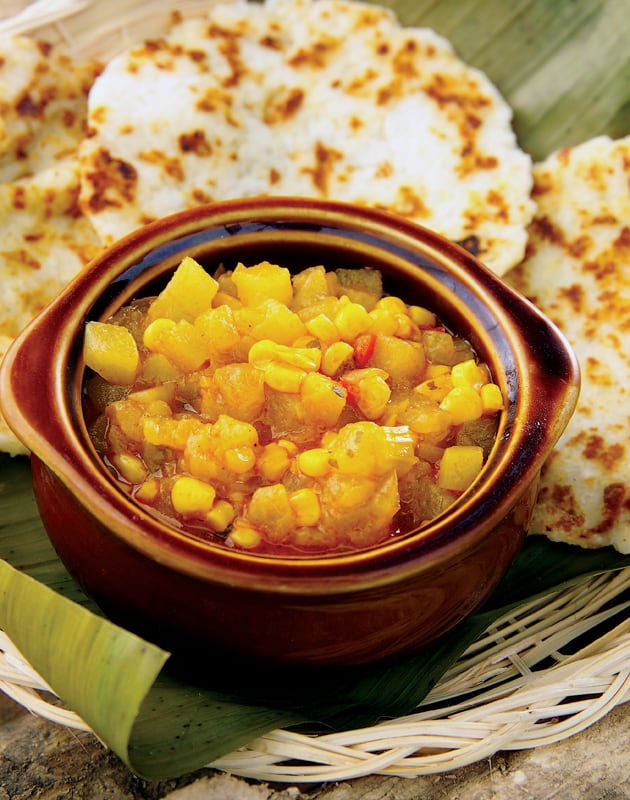 Agregue el chayote y un poquito de agua (ya que el chayote suelta mucha) cocine por 15 minutos a fuego medio y añada el maíz dulce y el culantro, acompáñelo con tortillitas caseras.