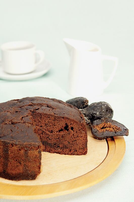 Añada a la mezcla los higos partidos en pedazos pequeños y revuelva. Hornee a 325°C por 45 minutos aproximadamente. Una vez que sale el queque del horno, vierta encima el vino tinto de forma uniforme.