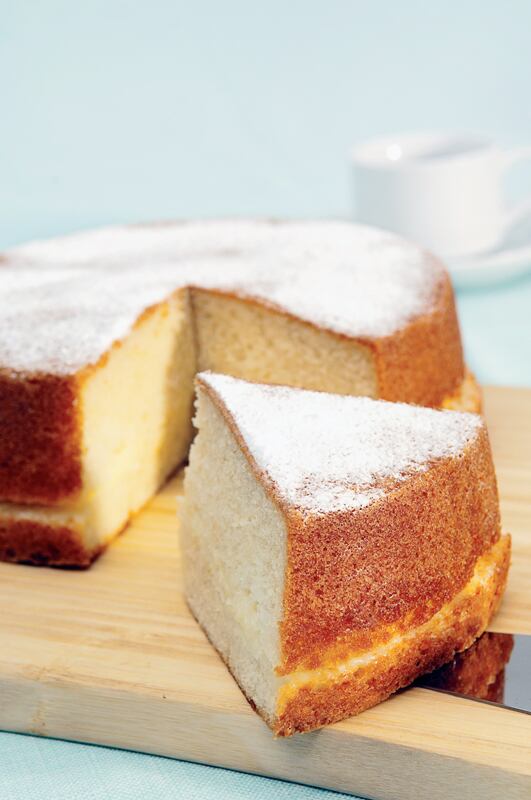Hornee a 325°C por 45 minutos aproximadamente. Rellene de crema pastelera el medio del queque. Decore con azúcar en polvo rociando levemente encima.