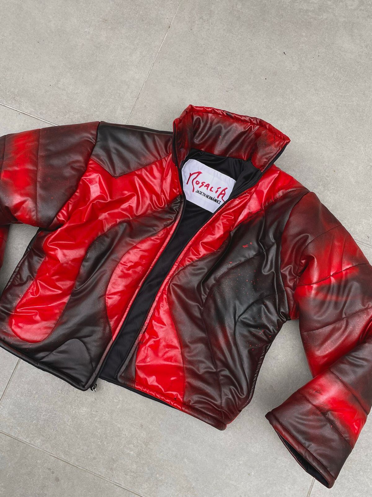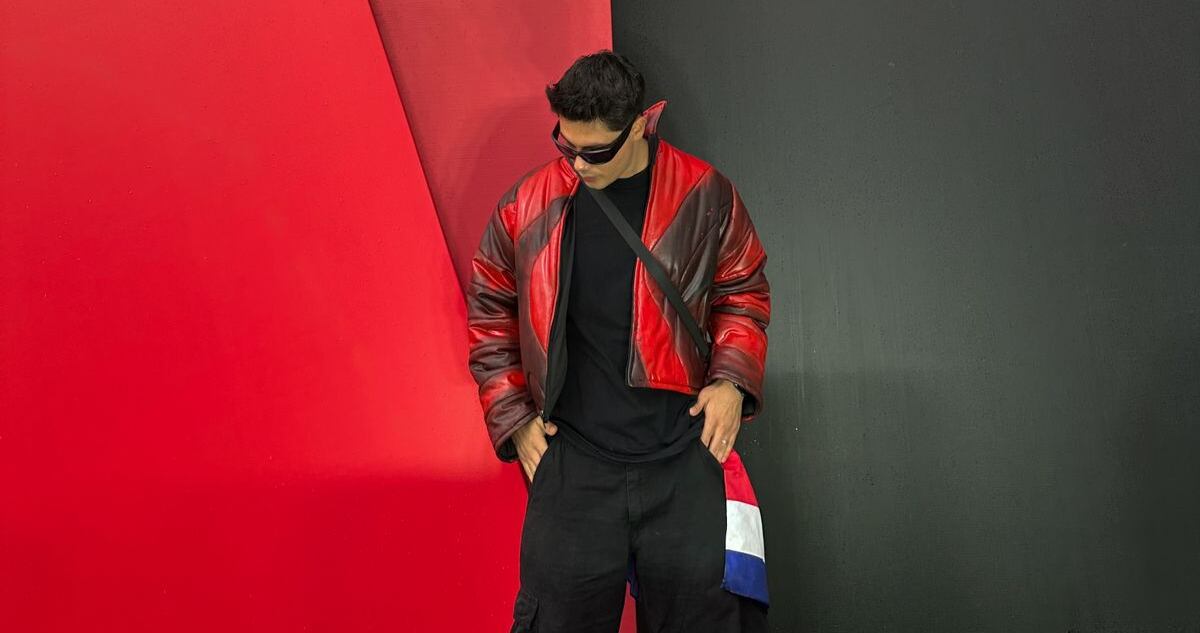 Era una jacket roja con negro de cuerina, con un relleno acolchonado de guata y una licra fría por dentro. La etiqueta decía “Rosalía” y un poco más abajo su nombre. Además, estaba pintada con spray “para que tuviera esa textura del álbum, muy urbano”, comentó Jaseth.