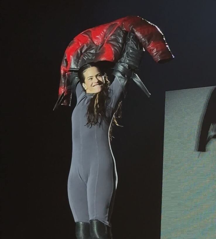 Cuando la intérprete finalmente salió a escena, el tico ya se había hecho amigo de las ecuatorianas que estaban en las primeras dos filas y ellas, amablemente, le ayudaron a levantar el cartel para que Rosalía cumpliera su sueño: que vistiera una jacket que desde hace seis meses había estado elaborando.