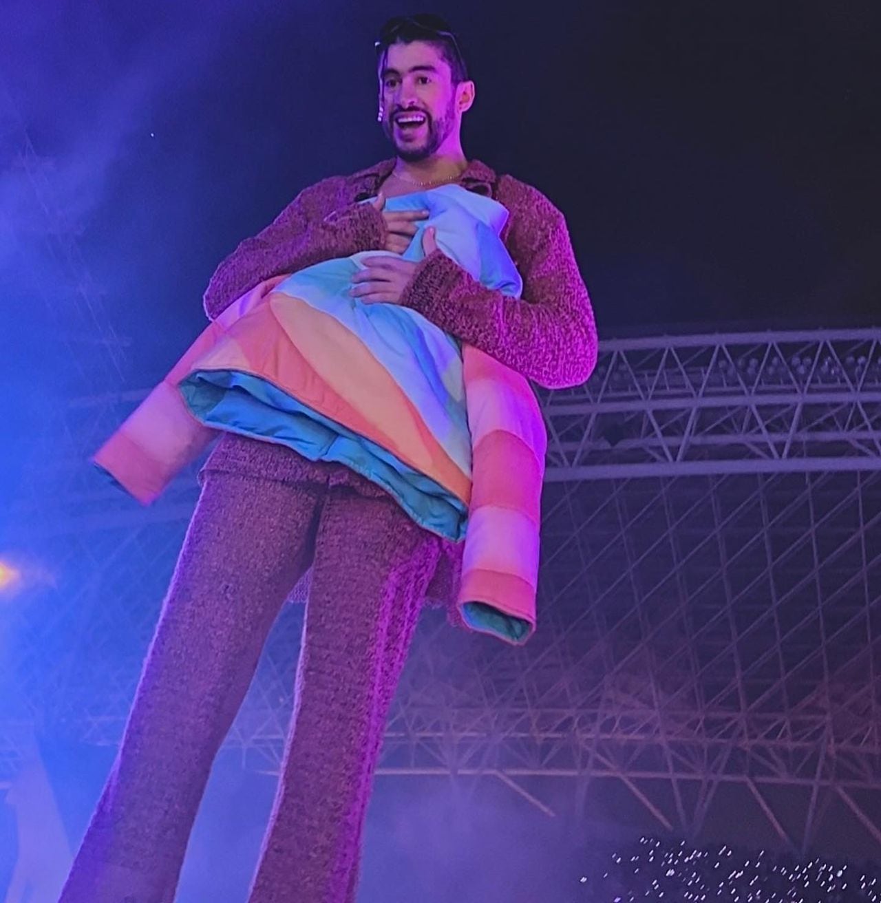 Sin embargo, la cantante española no es la primera artista a la que le ha logrado entregar en sus manos una jacket, pues el pasado mes de noviembre, cuando Bad Bunny se presentó en el Estadio Nacional, el joven le entregó una pieza de su autoría, basada en el disco Un verano sin ti.