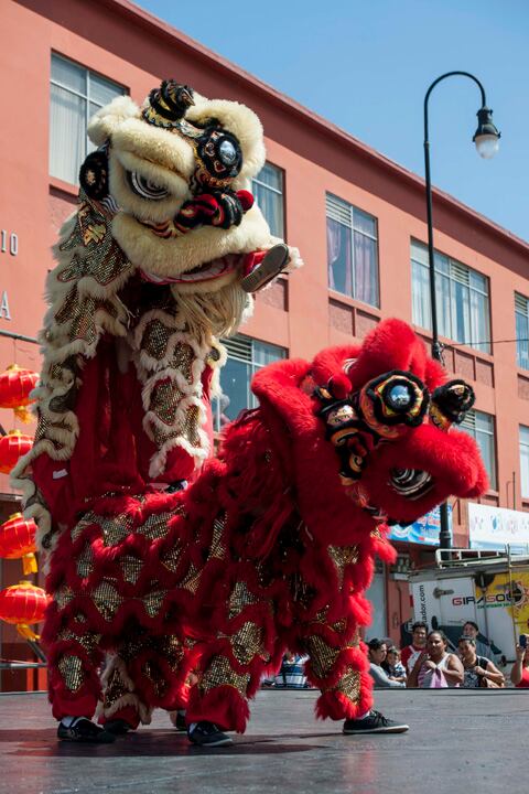 Dos dragones, uno rojo y uno dorado, bailan en un bulevar peatonal de San José. Los mueven varios muchachos, algunos de ojos rasgados, otros de piel morena. Junto a los dragones, un grupo de niños –unos de piel clara, otros de colochos negros– juegan y saltan dentro de unos inflables.