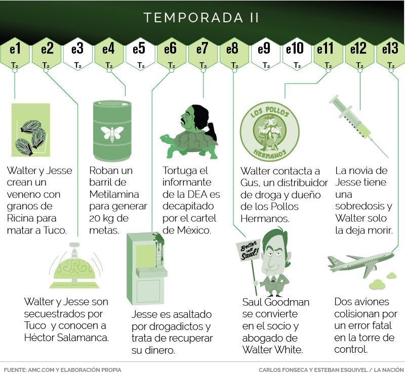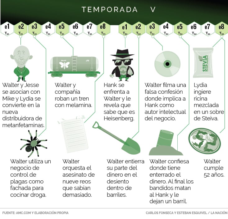 Breaking Bad se estrenó en el 2008, con una temporada de tan solo siete episodios. En Latinoamérica, fue Sony Entertainment Television el canal que lo transmitió; para la segunda temporada había sido trasladado al canal AXN. Aquí, como en todas partes, fue un fenómeno.