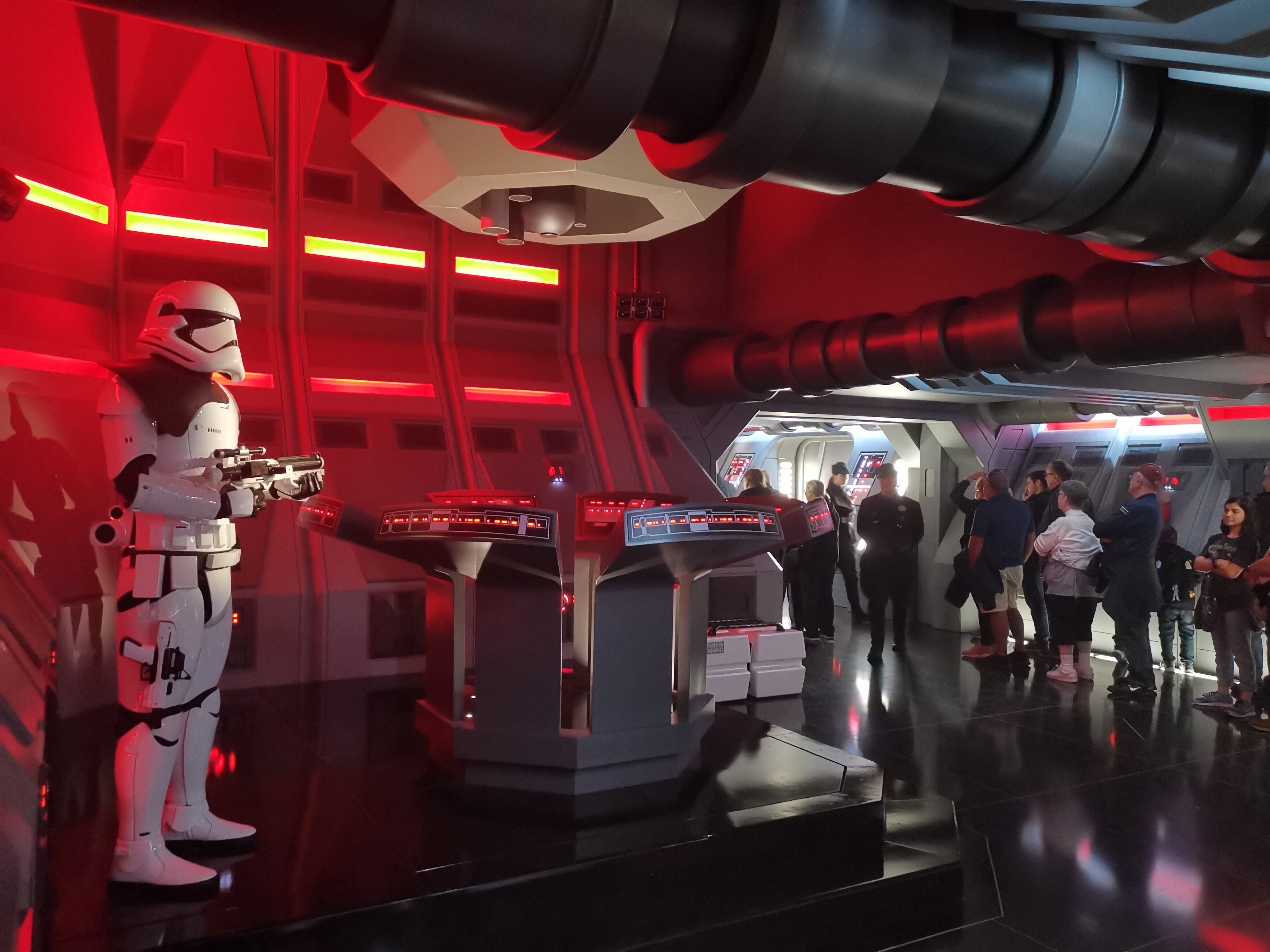 Adicionalmente, para Rise of the Resistance hay otro requisito obligatorio: anotarse con anticipación en un grupo de abordaje, el cual le asignará una hora de ingreso a la atracción. Esto se hace por medio del app de Disney y se puede agendar desde antes de su visita al parque. Tenga en cuenta que la cantidad de grupos de abordaje por día es limitada y que entre más tarde sea su cita, mayores serán las posibilidades de que se quede sin poder ingresar. Además, una vez pasado el control de la entrada, adentro tendrá que hacer la fila que mencionamos antes, la cual no es visible desde el exterior de la atracción (de nuevo: pida FastPass para este ride, le conviene).