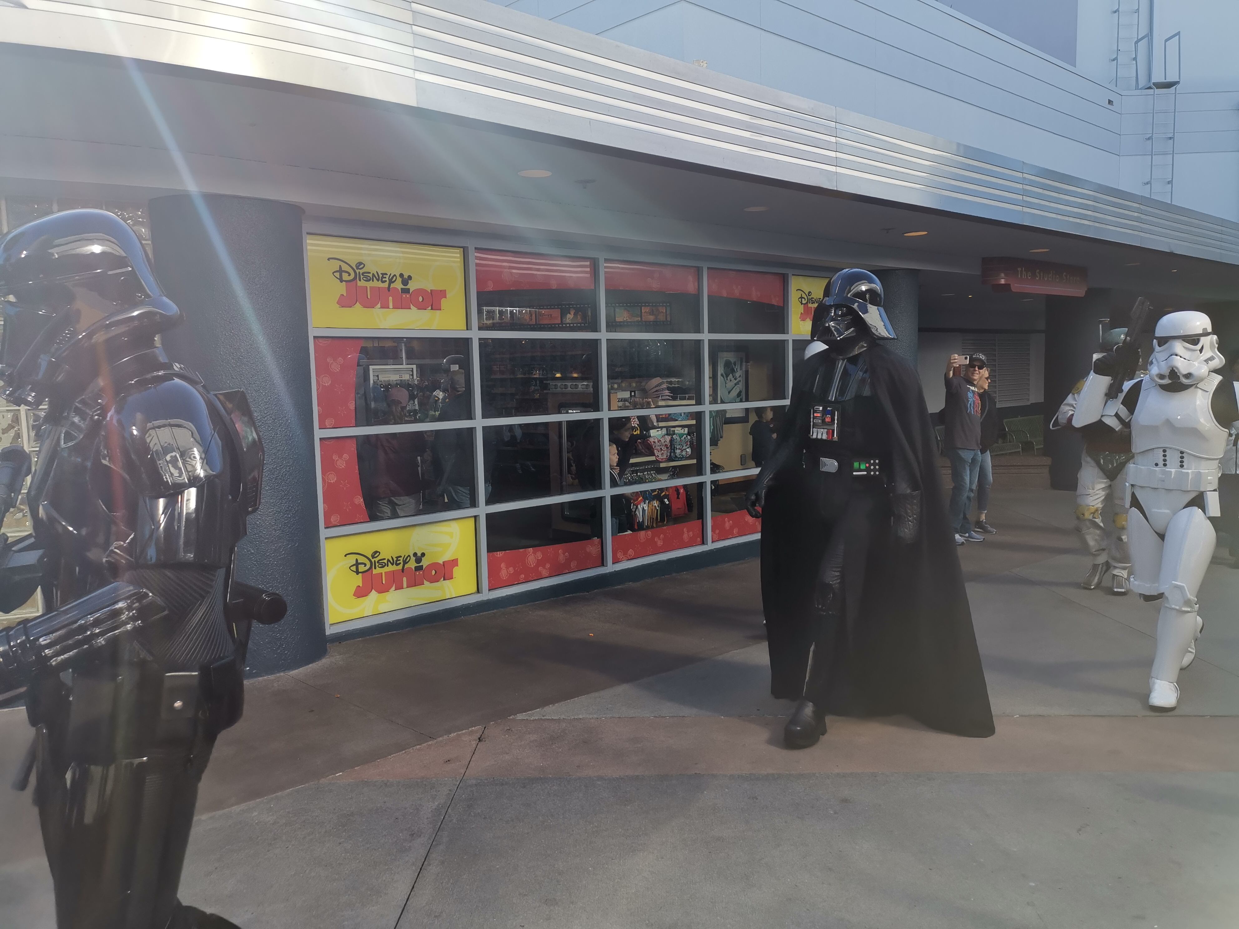 Además a lo largo del día se hacen desfiles por distinto lugares del parque con personajes como Boba Fett, Kylo Ren y Darth Maul, y en las noches se efectúa un espectacular juego de pólvora y luces alusivo a Star Wars, el cual en nuestra visita no pudimos ver porque coincide en horas con Fantasmic!, un show basado en los principales filmes de Disney con proyecciones sobre agua dentro de un enorme anfiteatro que es imperdible. Hay que escoger uno u otro.