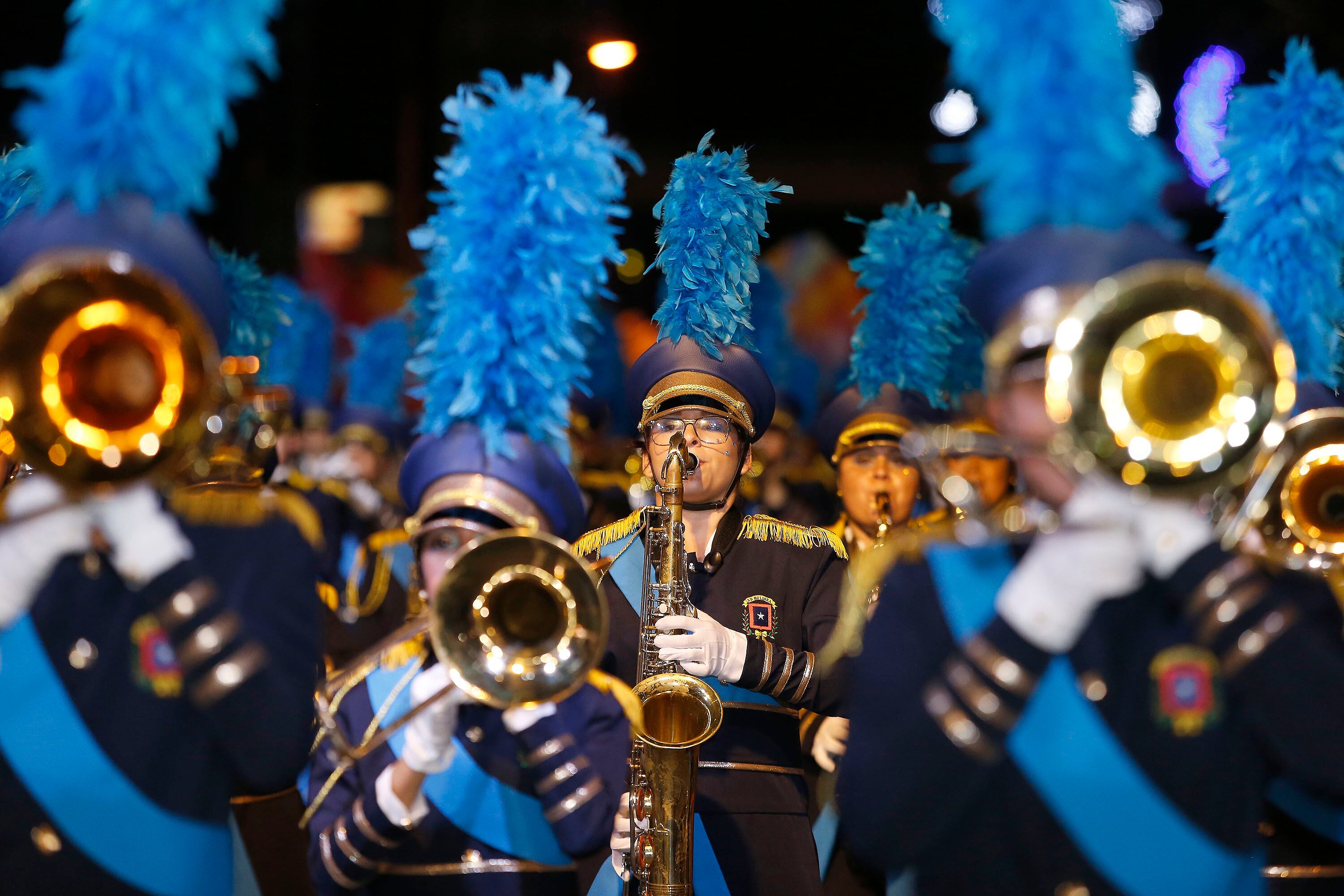 Alternados entre carrozas caminarán las 13 bandas seleccionadas para el Festival de la Luz 2019. Los ensambles participantes, en orden de aparición, son: Municipal Café Tarrazú (ganadora del 2018), bandas del Colegio Técnico Profesional Santa Cruz, Colegio Técnico Profesional Valle La Estrella, Municipal de Zarcero, Municipal de Nicoya, Municipal de Garabito y Cedes Don Bosco.