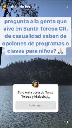 Un dato adicional es que la experiencia de la hija de Eugenio Derbez fue tan agradable, que recientemente usó su Instagram para pedir recomendaciones de clases o programas para niños en la zona de Santa Teresa y Malpaís. Ella es madre de Kailani, de tres años, su hija en común con el actor Mauricio Ochmann.