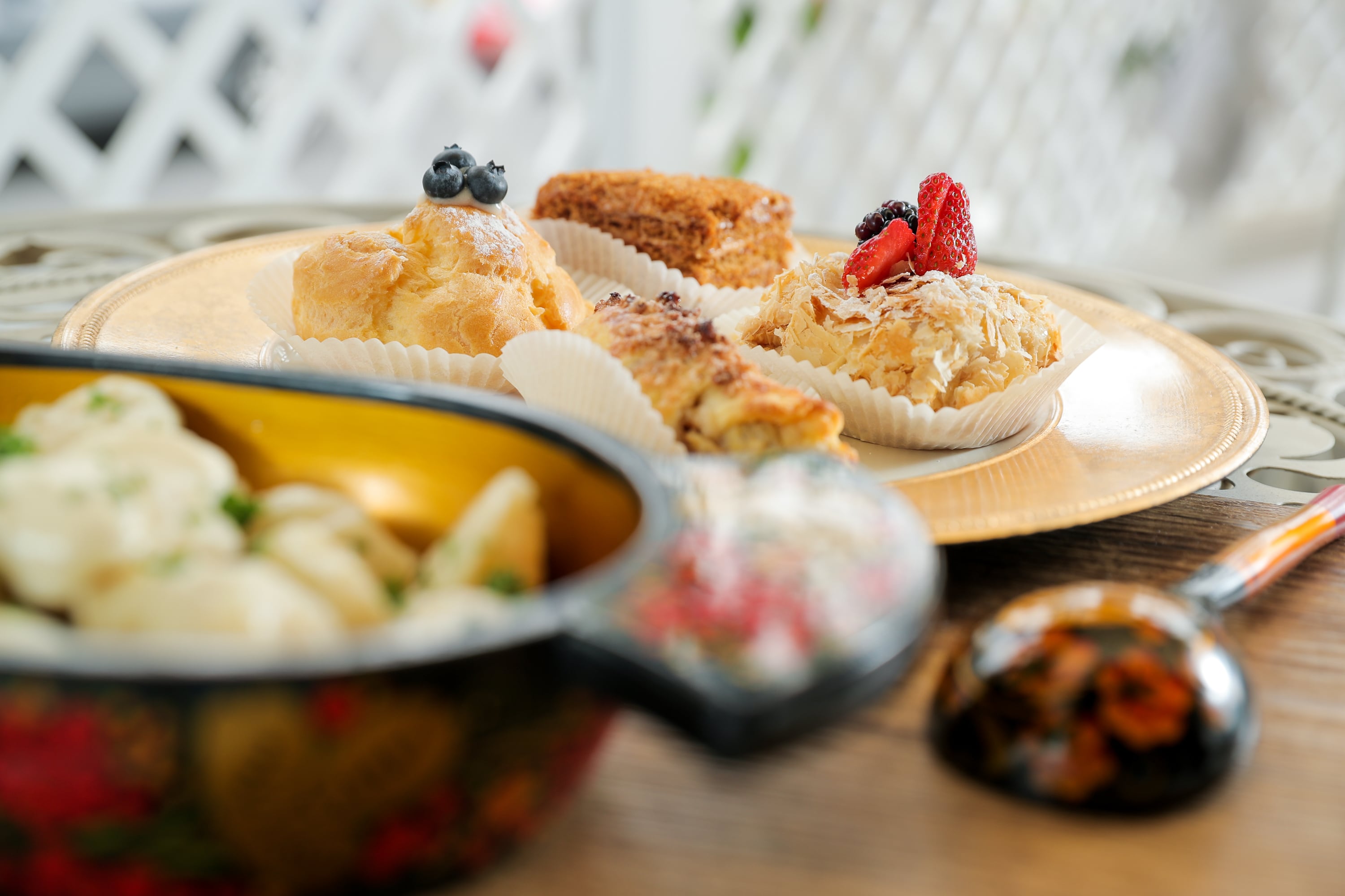 Este rincón de Rusia se siente como la sala de un hogar. Nos rodean las hojas de uva, cultivadas aquí para envolver algunas carnes, elegantes mesas blancas y la agitación ligera de una tarde en Curridabat. Estamos en Café Anka, que por 18 años ha brindado a comensales ticos oportunidad de viajar al otro lado del mundo.