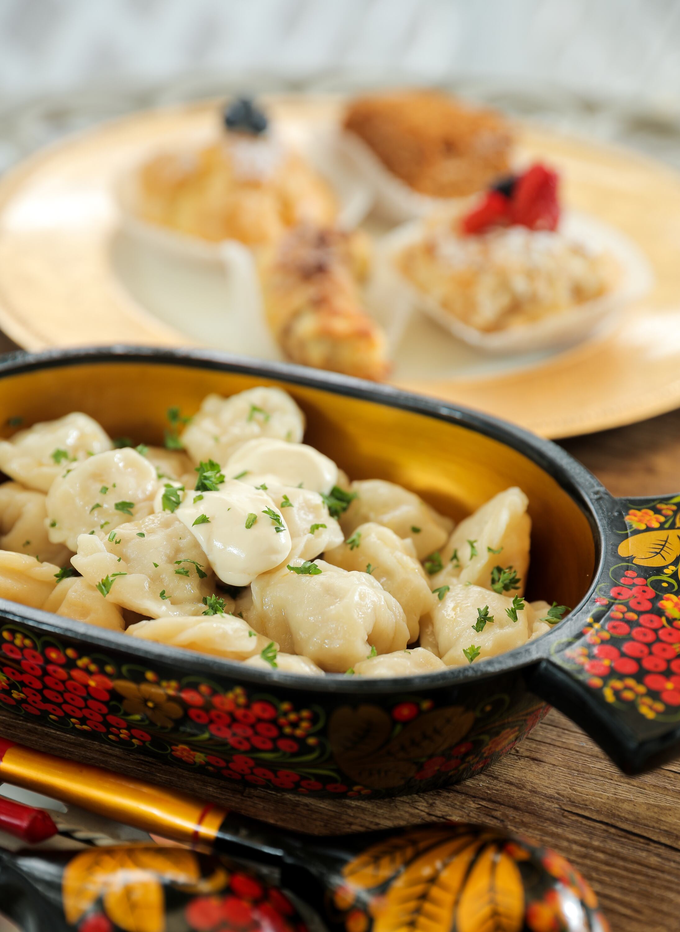 Las sopas evidencian tal diversidad: hay de hierbas, de carnes, de todo. Otros platillos, como los pelmeni, rellenos de carne, pollo o queso, confortan con su calidez; las ensaladas (como la “rusa” de verdad) refrescan con su ligereza. En los pelmeni, el contraste entre la cálida y suave bolita de masa y la nata realza el intenso sabor de la carne; es un platillo preparado en los territorios fríos.