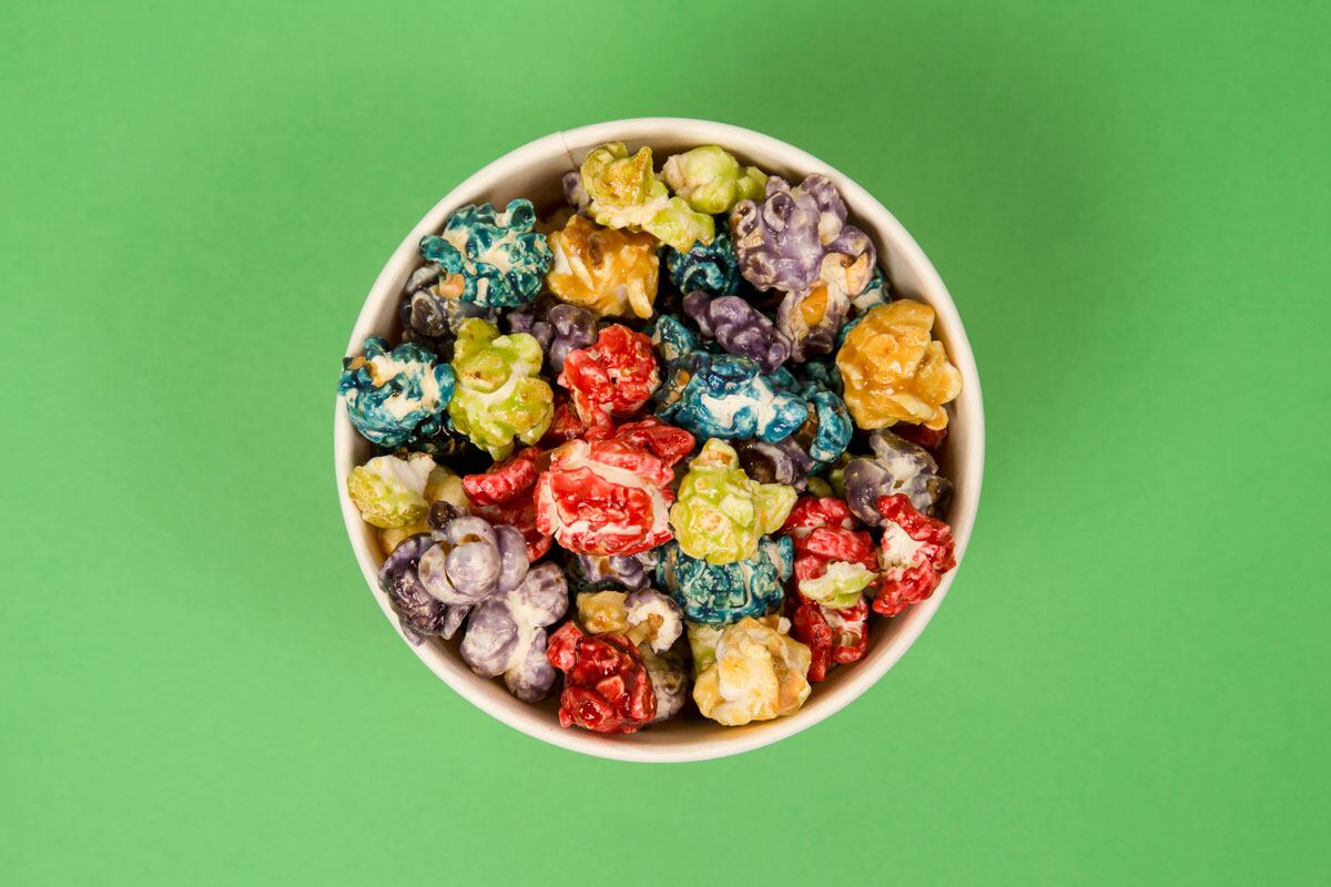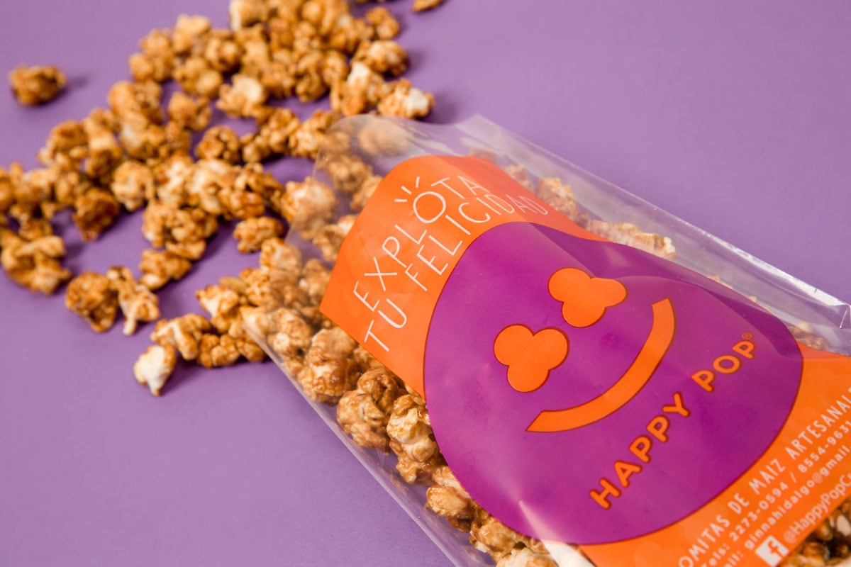 Huele a cine, pero mejor. Las palomitas de tantos colores y sabores en las urnas de Happy Pop son un viaje en el tiempo a la infancia.