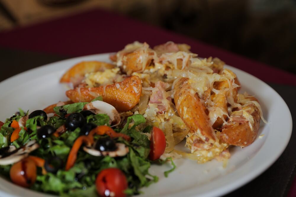“Este plato lleva una base de papa salteada con cebolla, jamón y huevo. Está bañado con queso provolone gratinado”, dijo Mathías Villegas, propietario del restaurante.