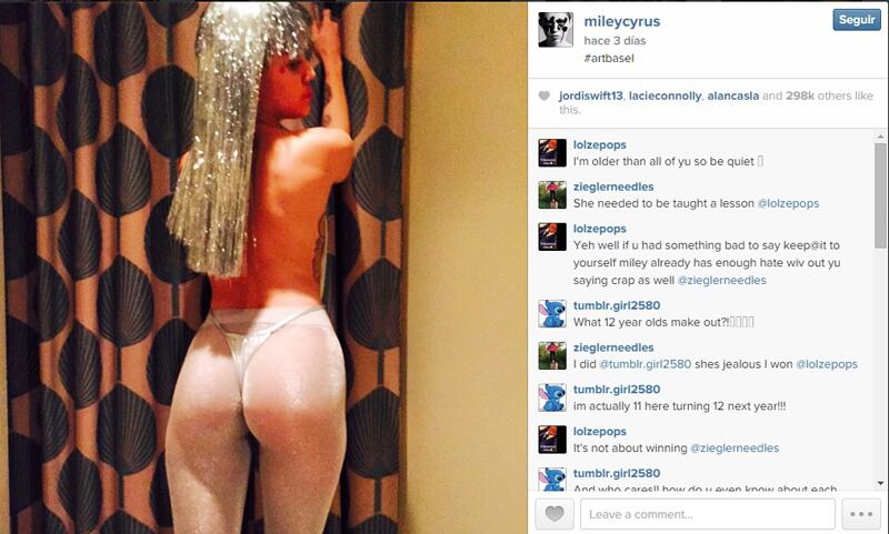Con unas reveladoras fotos, al mejor estilo de Kim Kardashian, Miley Cyrus causó revuelo en las redes sociales y reafirmó su etiqueta de “niña loca”.