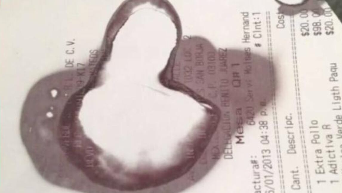 En ese sentido, reveló a sus compañeros de set que hace un tiempo, cuando estaba en una cafetería, sintió que ella se le apareció. En las imágenes compartidas durante el programa, se puede ver un recibo de pago con una gran mancha que tiene una forma similar a la postura superior de la Virgen.