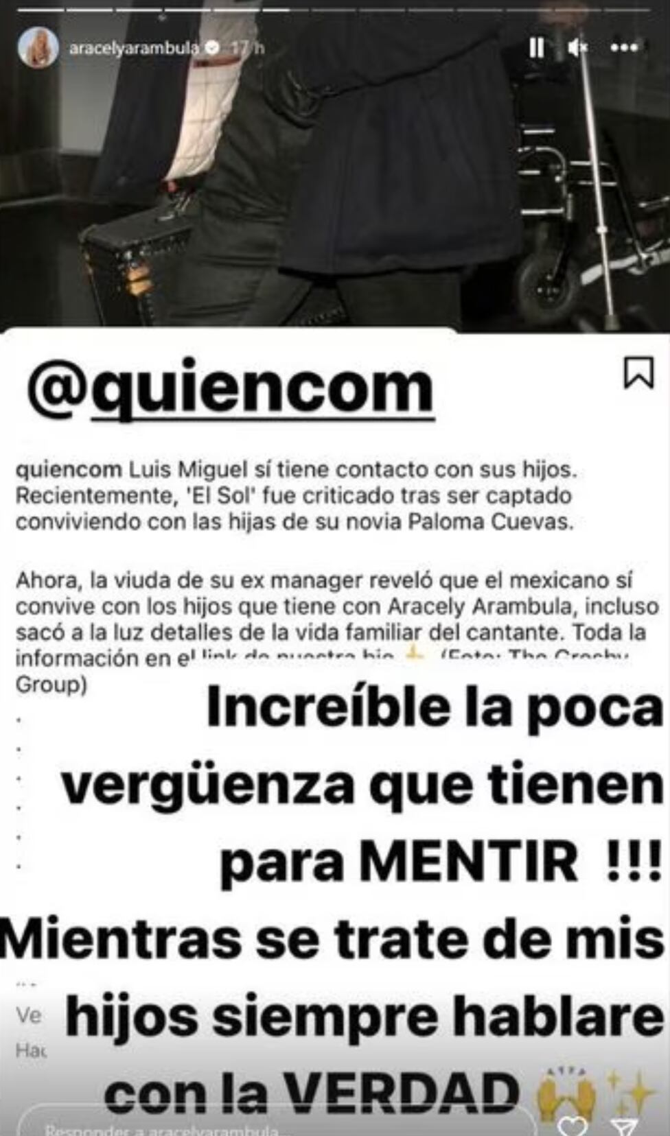 Aracely Arámbula no suele aclarar lo que se dice sobre ella, su ex, Luis Miguel, y los dos hijos que tienen en común; sin embargo, en esta ocasión sí lo hizo luego de que Lucía Miranda, amiga cercana de Luismi, y viuda de su exmánager Hugo López asegurara que el artista sí ve a sus hijos.