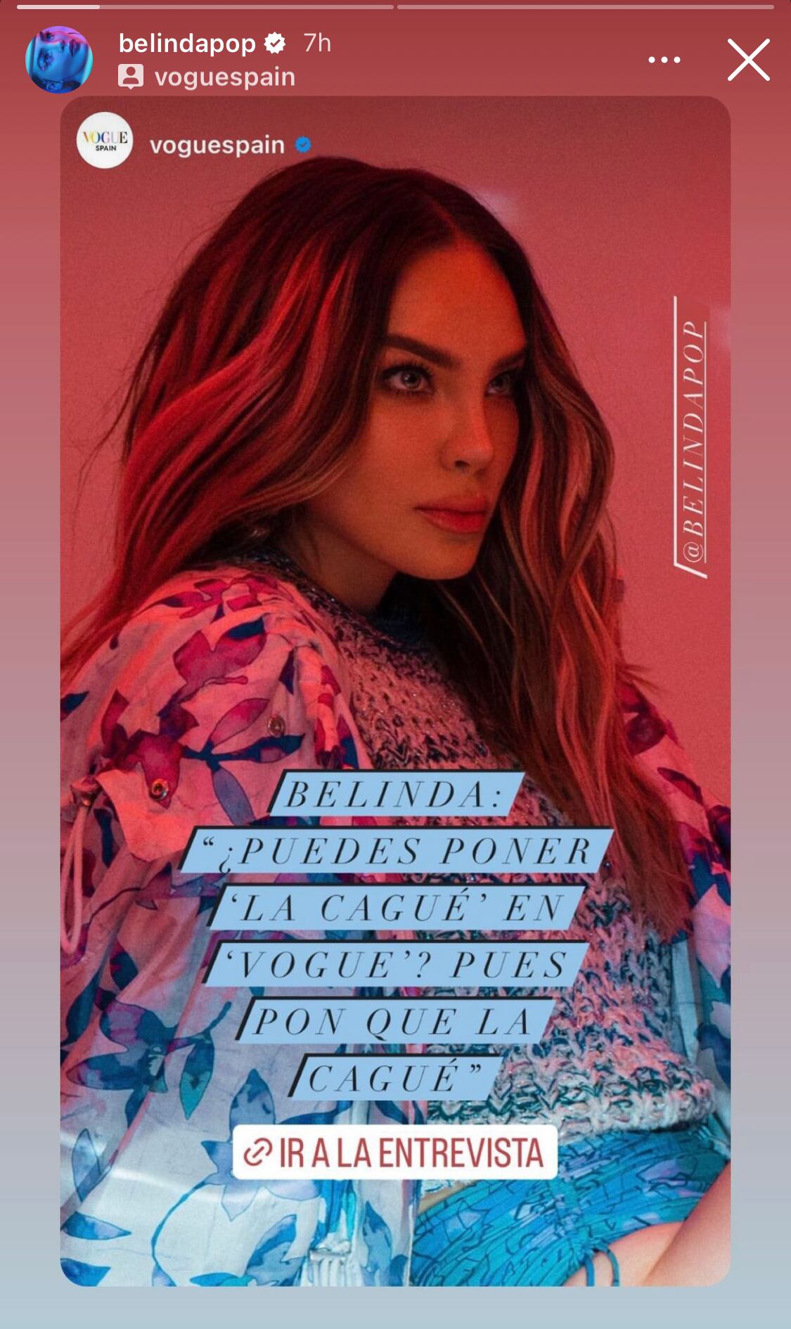 Belinda, quien después de ser fuertemente criticada en México dijo que regresaría a su país natal y otorgó una entrevista a Vogue España para hablar de Nodal y de su vida sentimental.