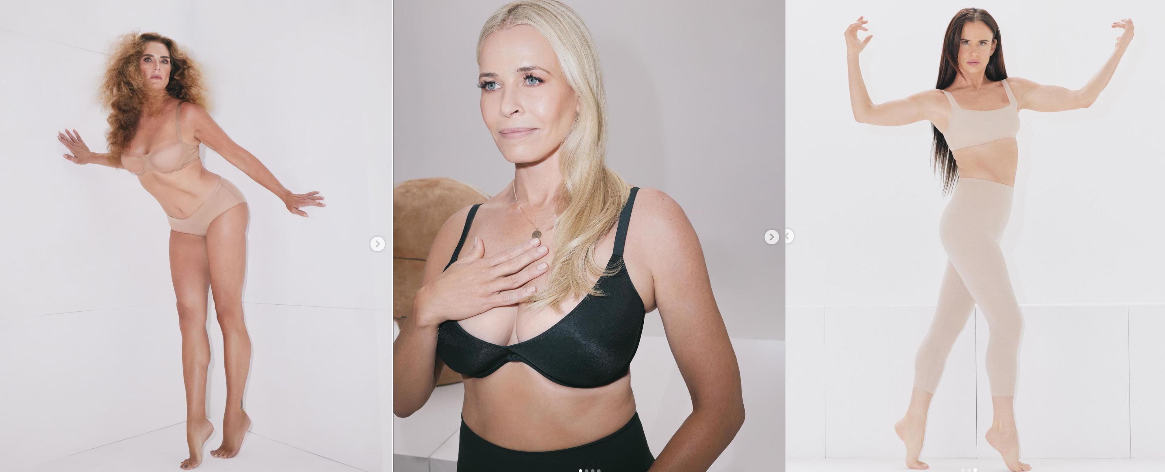 La actriz es una de las 50 mujeres de distintas edades, siluetas y origen étnico que posan con la nueva línea de ropa interior, fajas y prendas reductoras para damas de la marca Skims, de la también actriz y personalidad social Kim Kardashian. La. marca Skims es, de hecho, un juego de palabras que mezcla el nombre Kim y la palabra skin (“piel” en inglés).