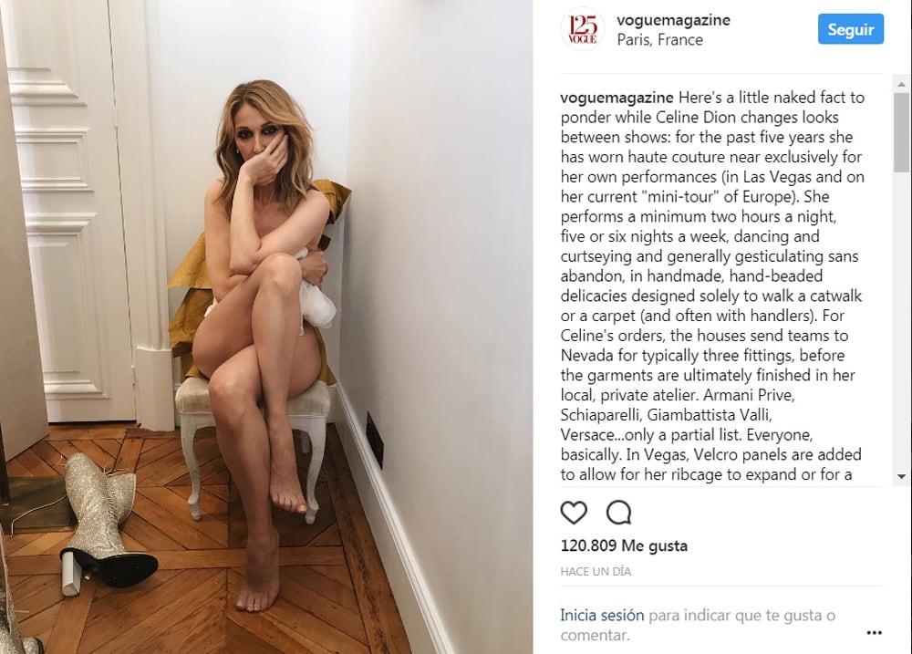 La cantante canadiense Celine Dion, de 49 años, posó desnuda para una sesión fotográfica de la famosa revista Vogue , en su versión francesa.