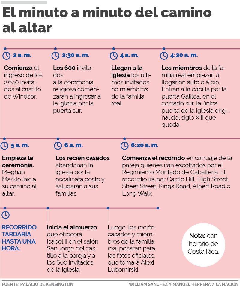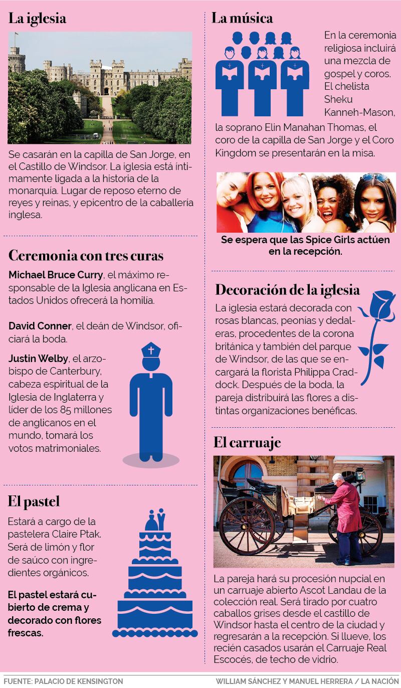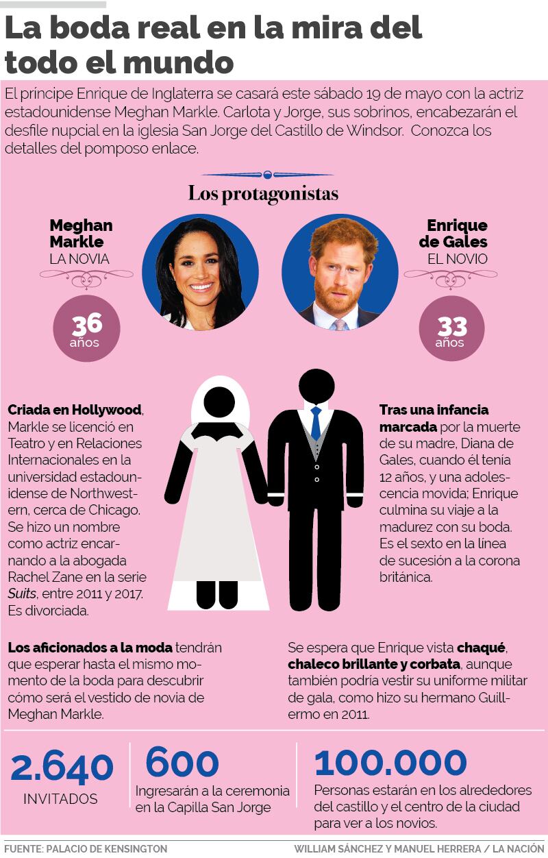 Meghan y Enrique darán el “sí, acepto” este sábado en la iglesia San Jorge del Castillo de Windsor, fortaleza ubicada al oeste de Londres y cuyos alrededores ya lucen abarrotados de “civiles” que esperan la hora cero para ovacionar a los nuevos esposos.