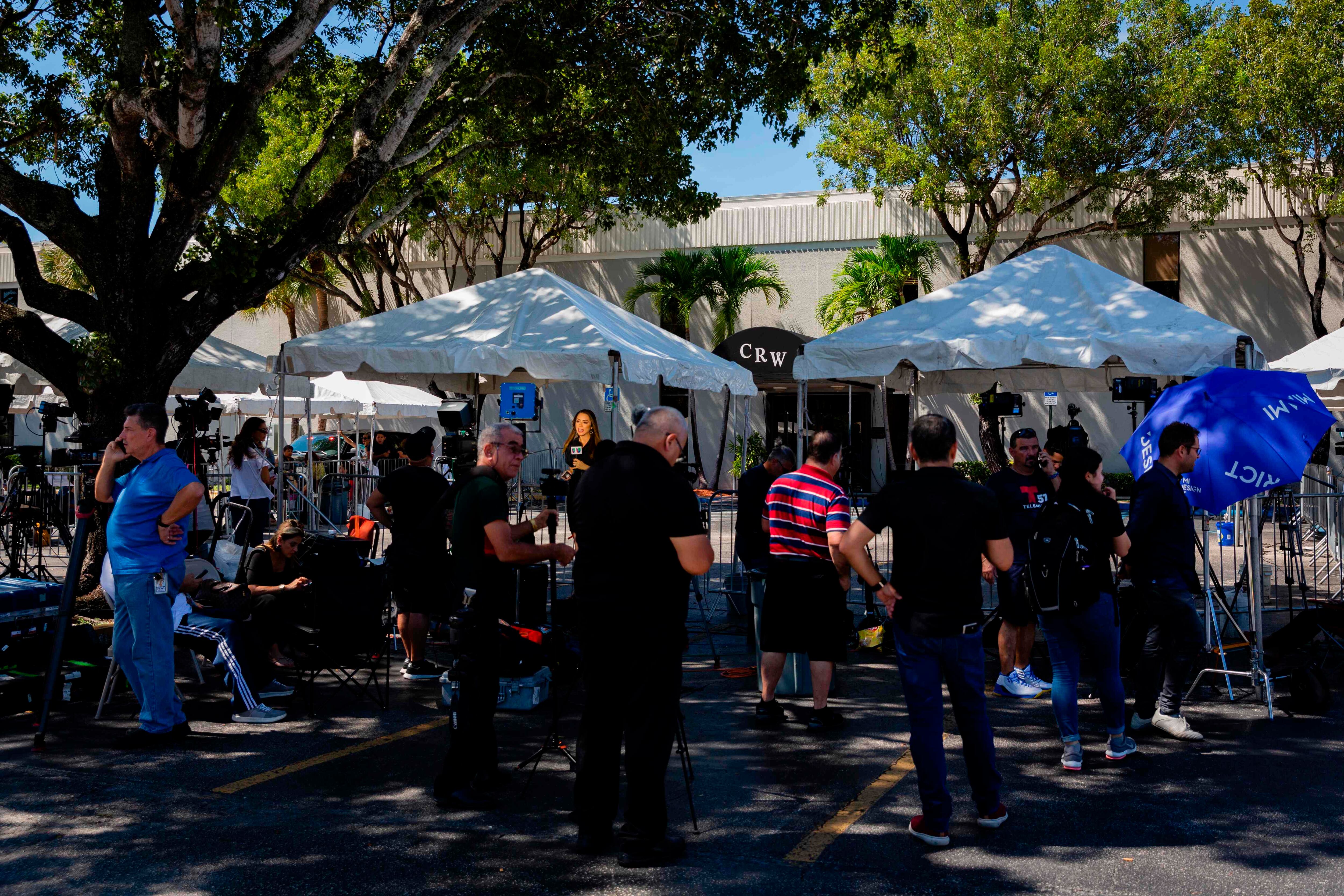 La casa funeraria Caballero Rivero en la ciudad de Westchester, vecina a Miami, permanecía cerrada antes del inicio del evento, mientras el estacionamiento que rodea al edificio se mantuvo vacío para acomodar a la prensa. Por un camino marcado por barricadas metálicas se esperaba que entraran los invitados.