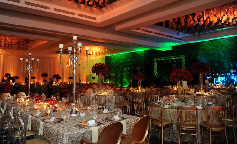 En el caso de la recepción, optaron por combinación del rojo y el dorado, combinados con distintos arreglos florales, en los que las rosas eran protagonistas.