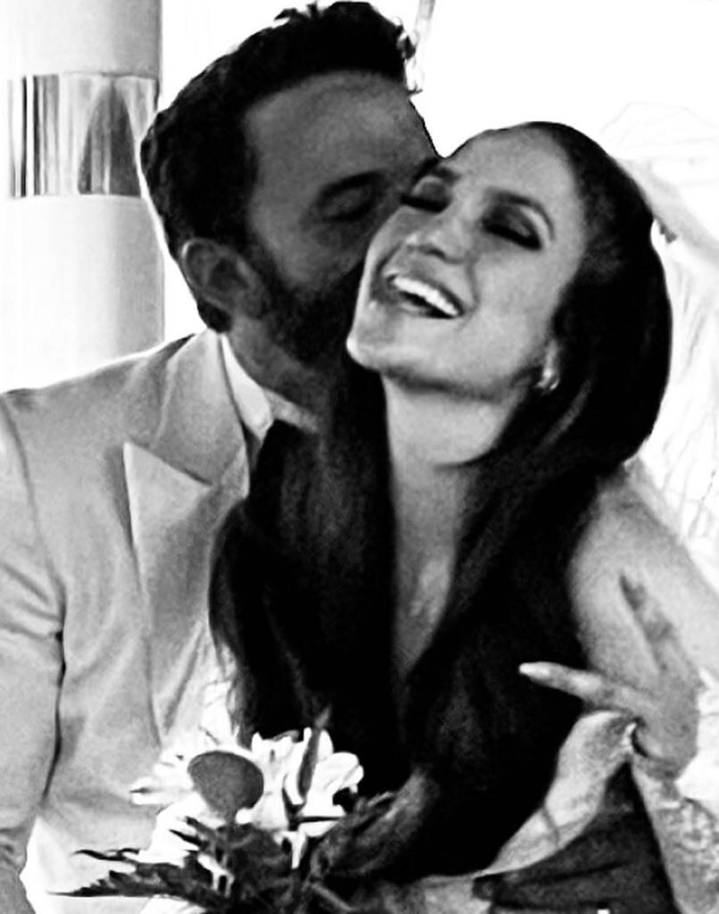 López y Affleck entablaron una relación amorosa en 2002, un año más tarde se comprometieron, pero en el 2004 decidieron terminar su compromiso para siempre, o eso creyeron en aquella época, pues 20 años más tarde lo lograron y, finalmente, son marido y mujer. Pero antes que JLo compartiera las primeras imágenes de la celebración, TMZ ya había sugerido en una publicación que, este sábado, la pareja firmó una licencia de matrimonio.