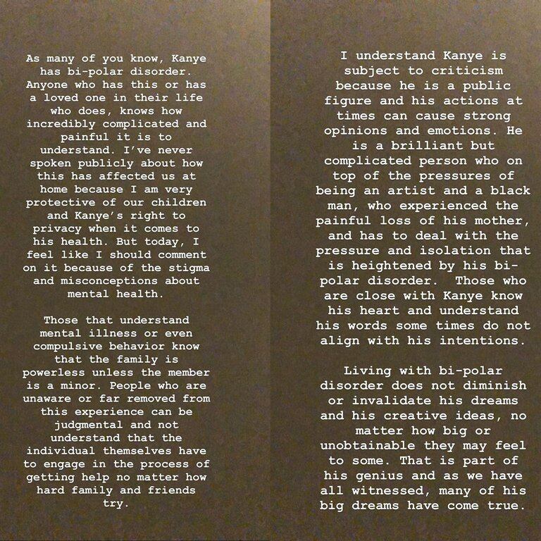 “Los que no están al tanto de ello o lo ven de lejos pueden emitir juicios y no entender que depende de la persona pedir ayuda, independientemente de lo que intenten la familia y los seres queridos. Los que conocen a Kanye saben que sus palabras no siempre están alineadas con sus intenciones”, agregó.