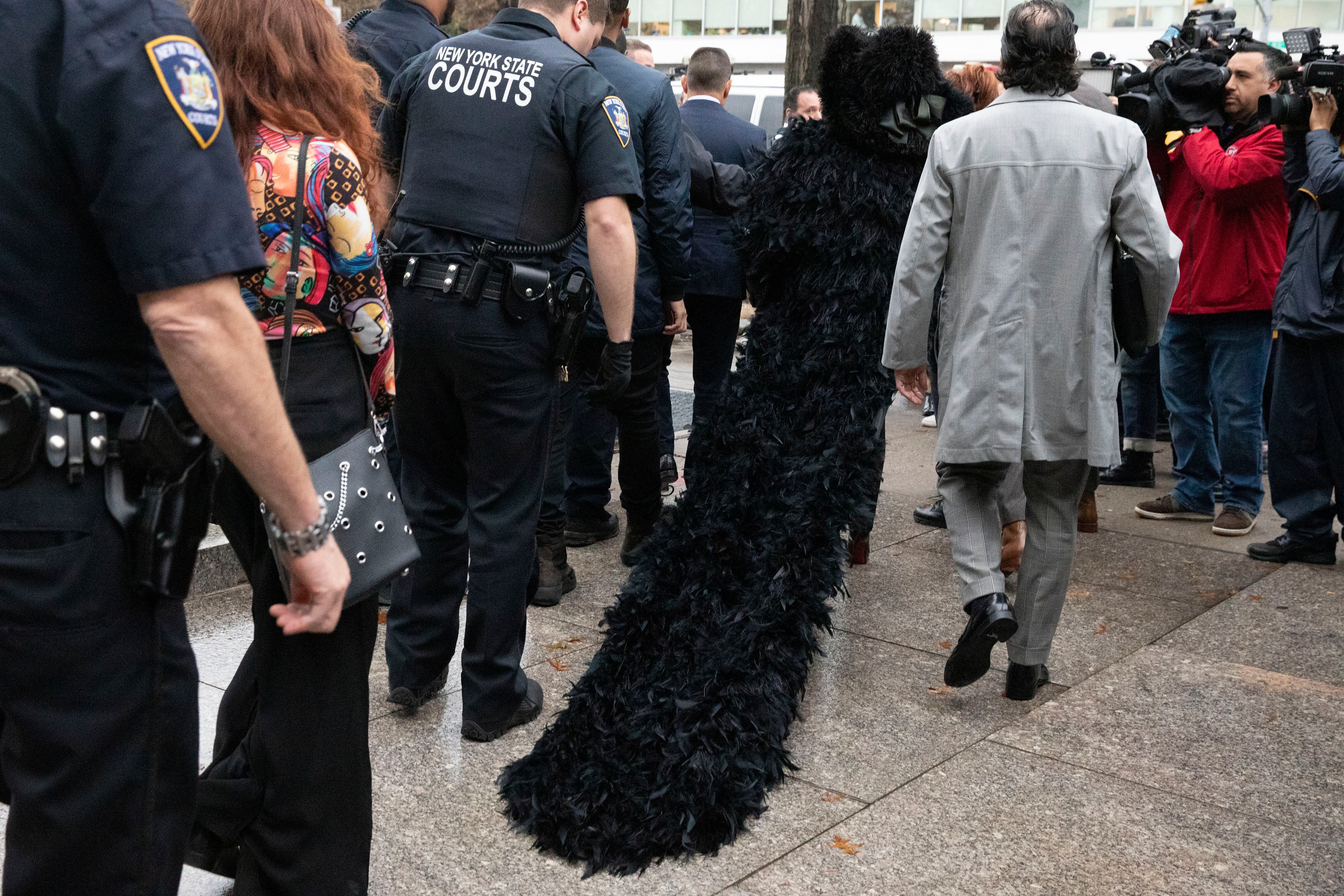 (Nueva York) AFP. La rapera estadounidense Cardi B hizo una nueva aparición rimbombante el martes en el Tribunal Penal de Queens, Nueva York, ataviada con un tapado de plumas con cola, sombrero gigante y corbata, en un caso que podría costarle un juicio.
