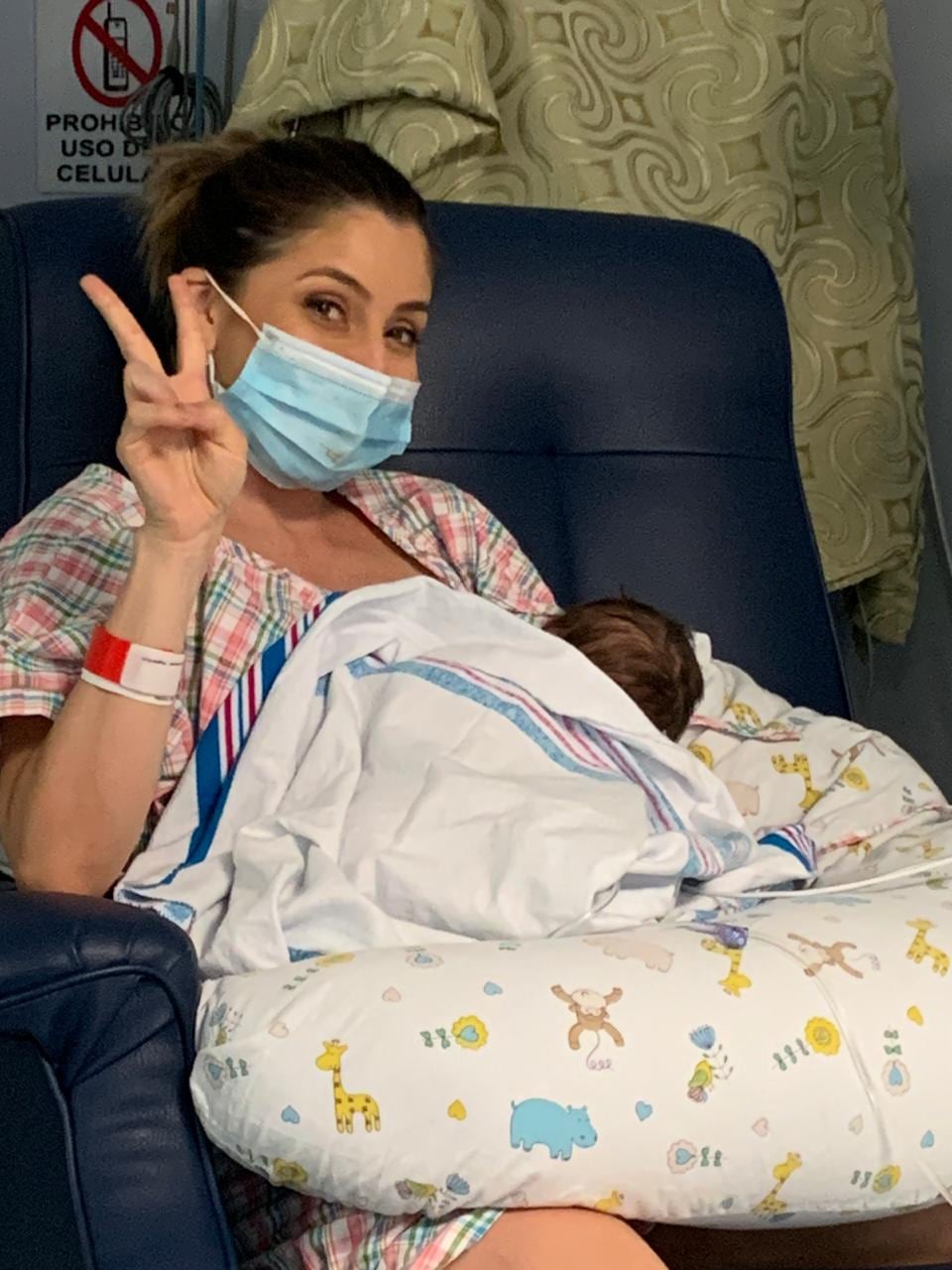 “Estamos superbien, gracias a Dios. En este momento estamos con el contacto piel con piel, dándole pecho. Estos son momentos que cuando se hace una cesárea se suelen retrasar, pero gracias a Dios todo salió muy bien en la operación y aquí estamos”, dijo Monge.