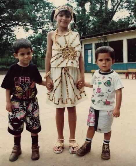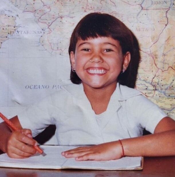 Otra de las figuras más conocidas de la televisión compartió esta imagen en la que se le ve, junto con otros dos niños, vestida con traje indígena, probablemente en una actividad escolar allá en uno de los cantones alajuelenses de donde es originaria. Ella llegaría a ser Miss Costa Rica y luego haría con éxito su transición a la pantalla chica como presentadora. Toda una diva de rostro hermoso y gran personalidad.