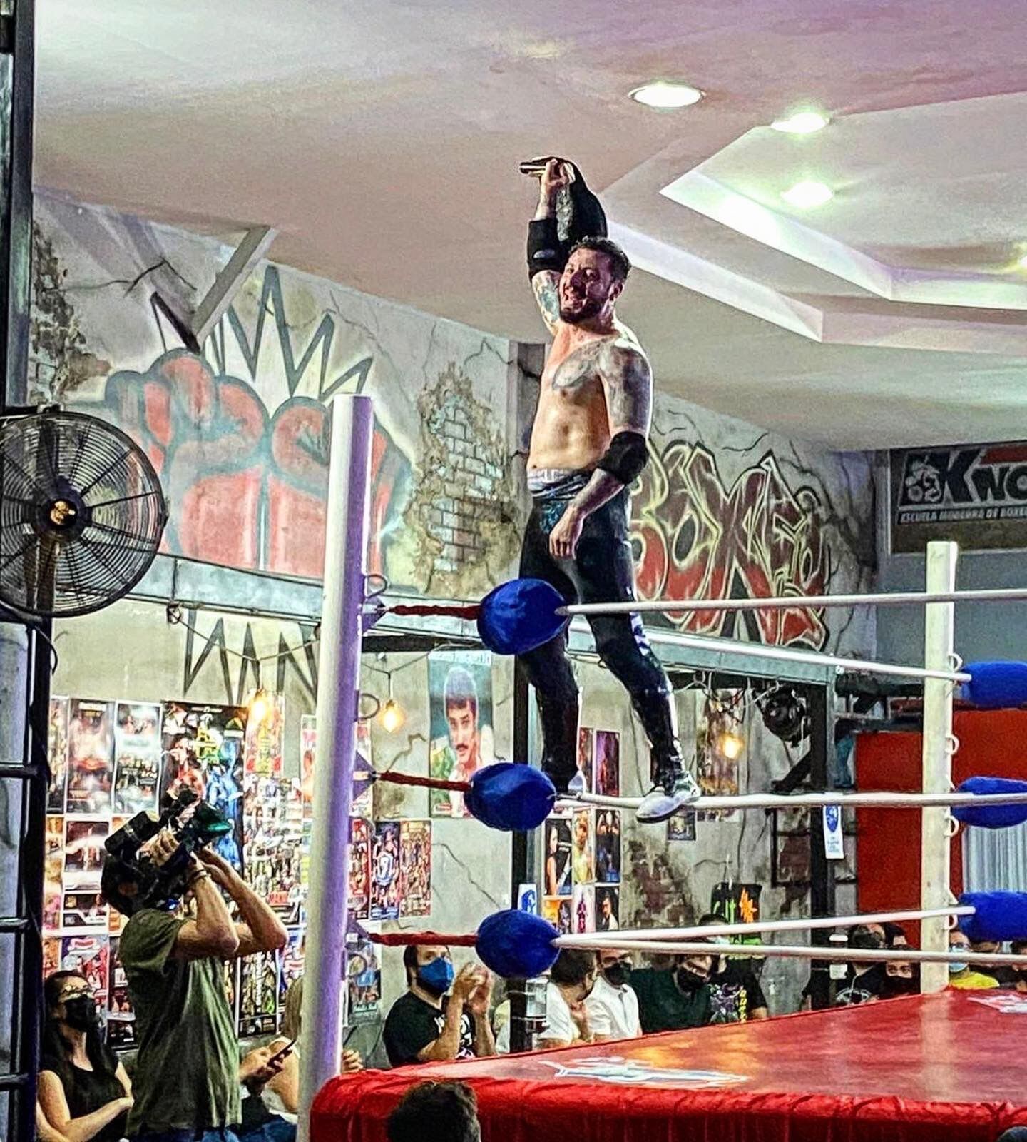 También me fui enamorando de esas otras cosas de la lucha libre y que es donde hoy me tienen, gracias a Dios, gracias a la vida, gracias a la empresa donde hoy trabajo que es Costa Rica Wrestling Embassy (CWE), pues soy campeón mundial y puedo representar al país en la empresa que probablemente es la más prestigiosa que hay en Centroamérica. Así que muy enamorado de la lucha libre como desde carajillo, cuando empecé, solo que ahora tomándomelo más en serio porque es parte de mi trabajo.