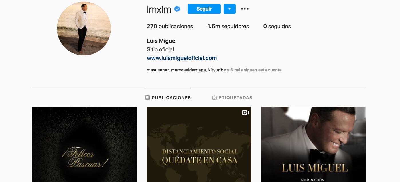 Mientras que las redes sociales son hoy la máxima herramienta de marketing para las personalidades públicas, y su uso y manejo es fundamental para el desarrollo de la marca, la cuenta de Instagram de Luis Miguel es prácticamente institucional.