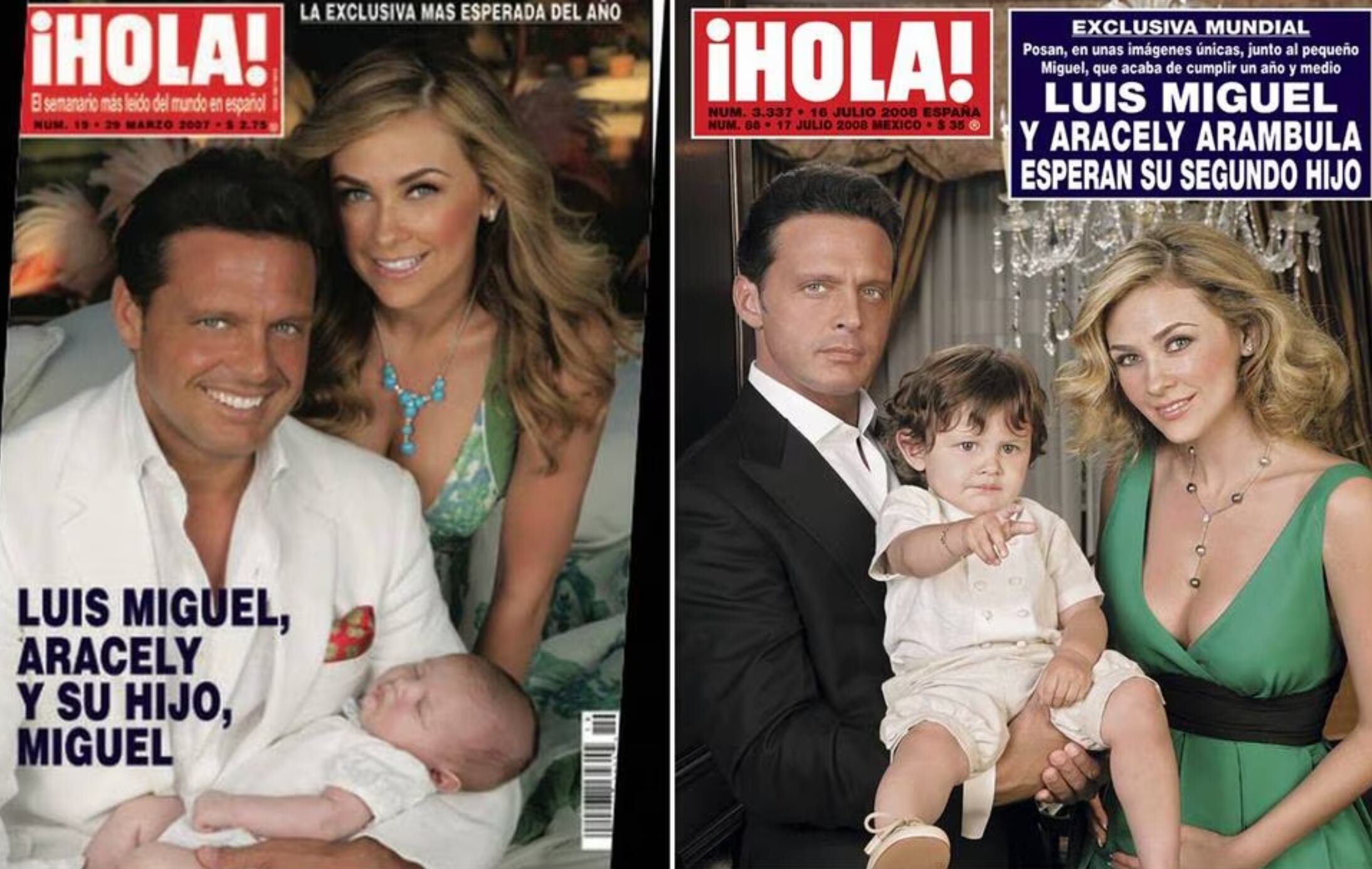 “Exclusiva mundial. Posan en unas imágenes únicas junto al pequeño Miguel que acaba de cumplir un año y medio. Luis Miguel y Aracely Arámbula esperan su segundo hijo”, se lee. La revista le dio la vuelta al mundo, aunque la imagen familiar de Luis Miguel duró muy poco, pues un año después llegó la separación, y la manutención de los niños, así como la convivencia que él tiene con ellos se dice que es prácticamente nula.