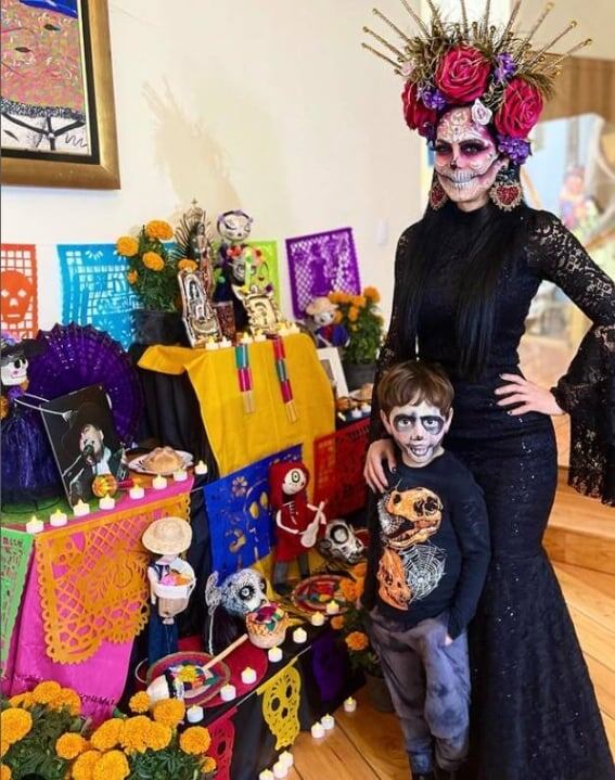 José Julián posó con su abuela junto a la ofrenda en la que se observa la foto de Joan Sebastian, expareja de Guardia y padre de su hijo Julián. Joan Sebastian falleció en el 2015.