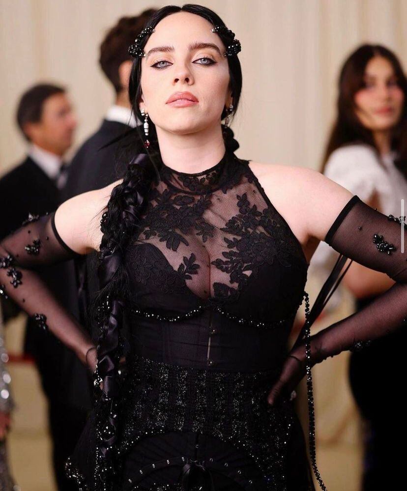 Para su tercera participación en el Met Gala, la mega estrella pop Billie Eilish dejó atrás a Oscar de la Renta y a Gucci y esta vez llegó con un vestido oscuro de la irlandesa Simone Rocha que le dio un aire tremendamente gótico, tal cual como se le conoció a ella cuando saltó a la fama en el 2018.