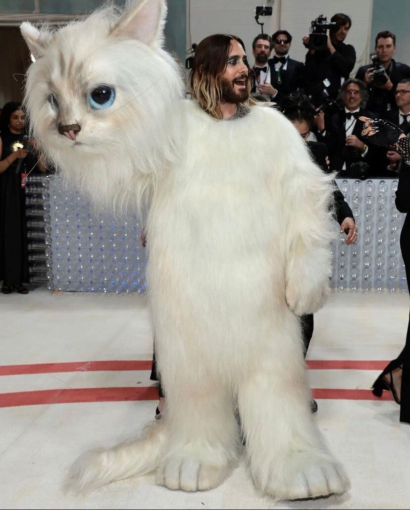 Leto, quien fue otro compinche de Lagerfield, quiso rendirle un tributo al alemán vistiéndose como Choupette, quien fue su inseparable mascota. Tras desfilar frente a los lentes de fotógrafos de todo el planeta, el estadounidense se sacó su cabeza felina y sonrió a los medios. Una postal irrepetible.