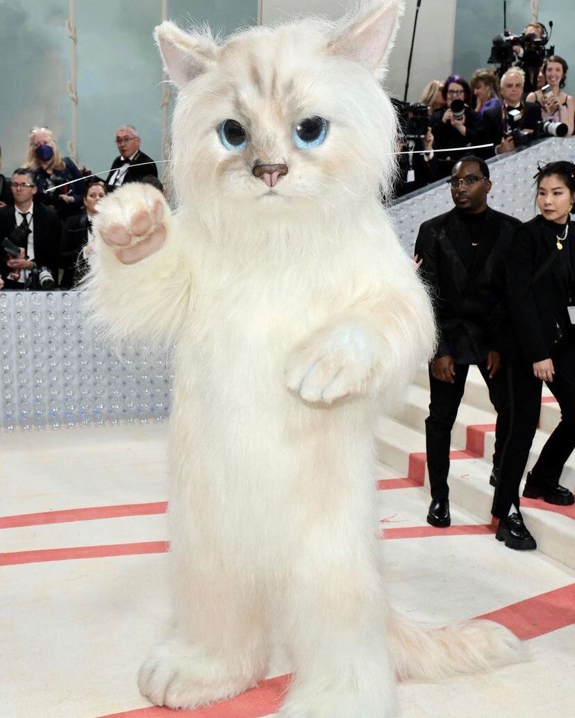 Un momento especial ocurrió cuando un gato gigante apareció en la pasarela. En los comentarios de la transmisión en YouTube, los seguidores del desfile empezaron a hacer suposiciones sobre quién estaba detrás del colosal felino. Algunos decían que Doja Cat, otros que David Byrne. La realidad fue que Jared Leto, el actor y cantante de Thirty Seconds to Mars, estaba debajo de la piel gatuna.