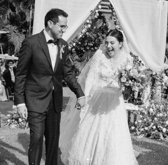 Mon Laferte ha lucido vestidos de novia en sus videos y en conciertos, pero esta vez le tocó ponerse uno en la vida real para casarse con el músico Joel Orta, padre de su hijo Joel.