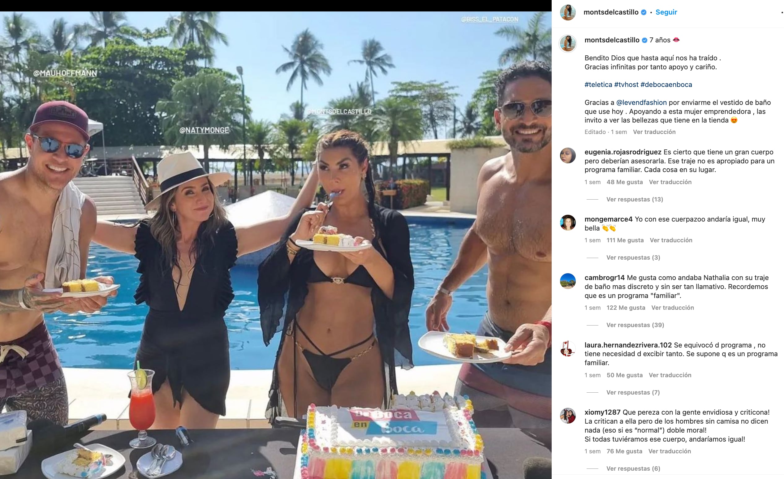 El programa de televisión cumplió el 10 de febrero siete años de estar al aire, por lo que el equipo se trasladó a un hotel en la playa y desde ahí hicieron la transmisión; no obstante, el traje de baño que utilizó Castillo no fue del agrado de algunos espectadores, quienes así lo manifestaron en sus redes sociales.
