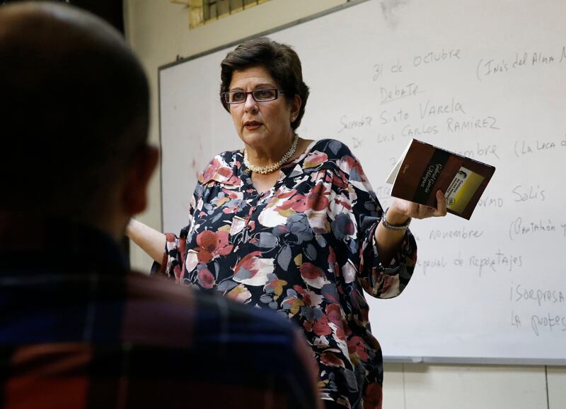La experimentada periodista está satisfecha; para ella, es muy agradable compartir con jóvenes deseosos de aprender.