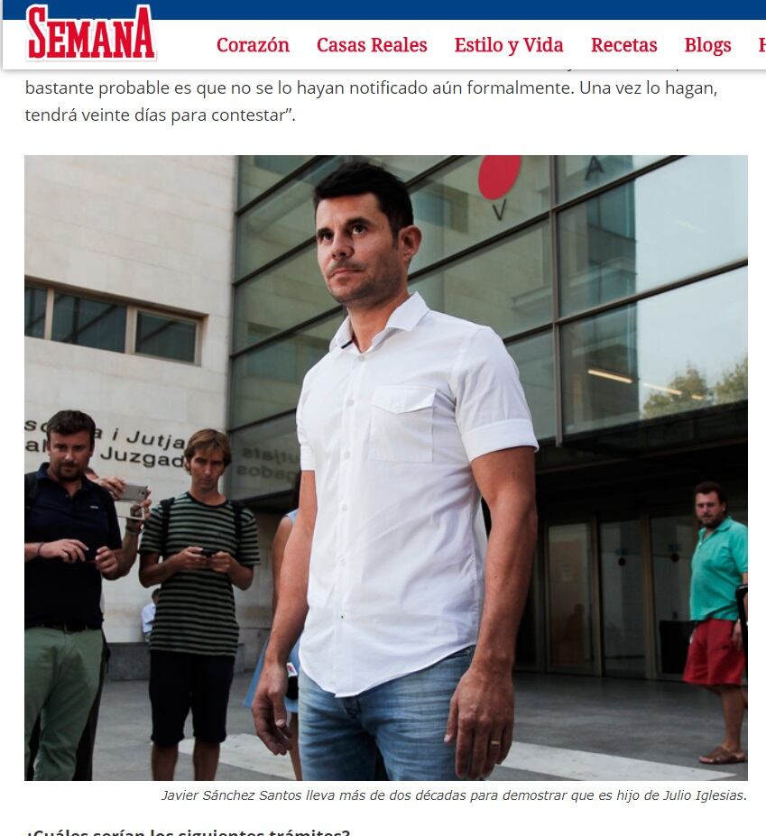 "A Julio Iglesias no se le ha notificado formalmente, pero es casi seguro que debe saberlo, porque además a mí me han entrevistado en distintas televisiones de Miami y México. Lo que es bastante probable es que no se lo hayan notificado aún formalmente. Una vez lo hagan, tendrá 20 días para contestar", explicó el abogado Fernando Osuna, defensor de Sánchez, a la revista Semana.